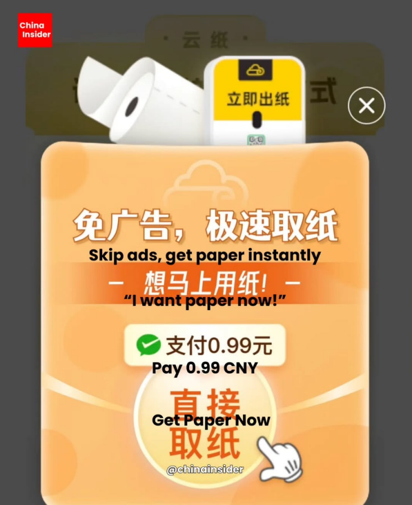 However, since there are photos and videos confirming that this toilet paper laundromat setup does, in fact, exist somewhere in China, it’s, in our view, less interesting whether it's a one-off stunt or the beginning of a trend or what cultural tendencies are at play here. What we want to zoom in on is the phenomenon itself: the idea that even something as basic and essential as toilet paper can now be gated behind ads. Regardless of the country or the scale, that’s the part worth paying attention to.