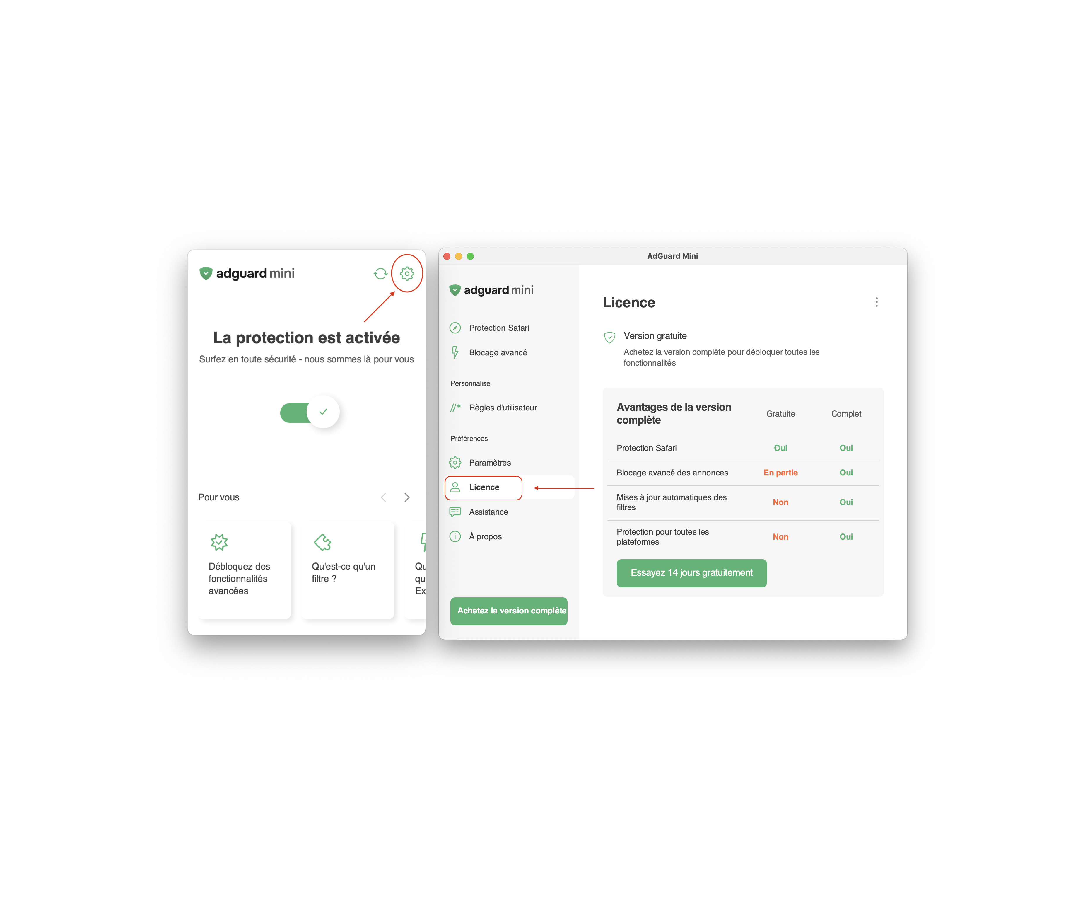 Ouvrez AdGuard Mini → Paramètres → Licence.