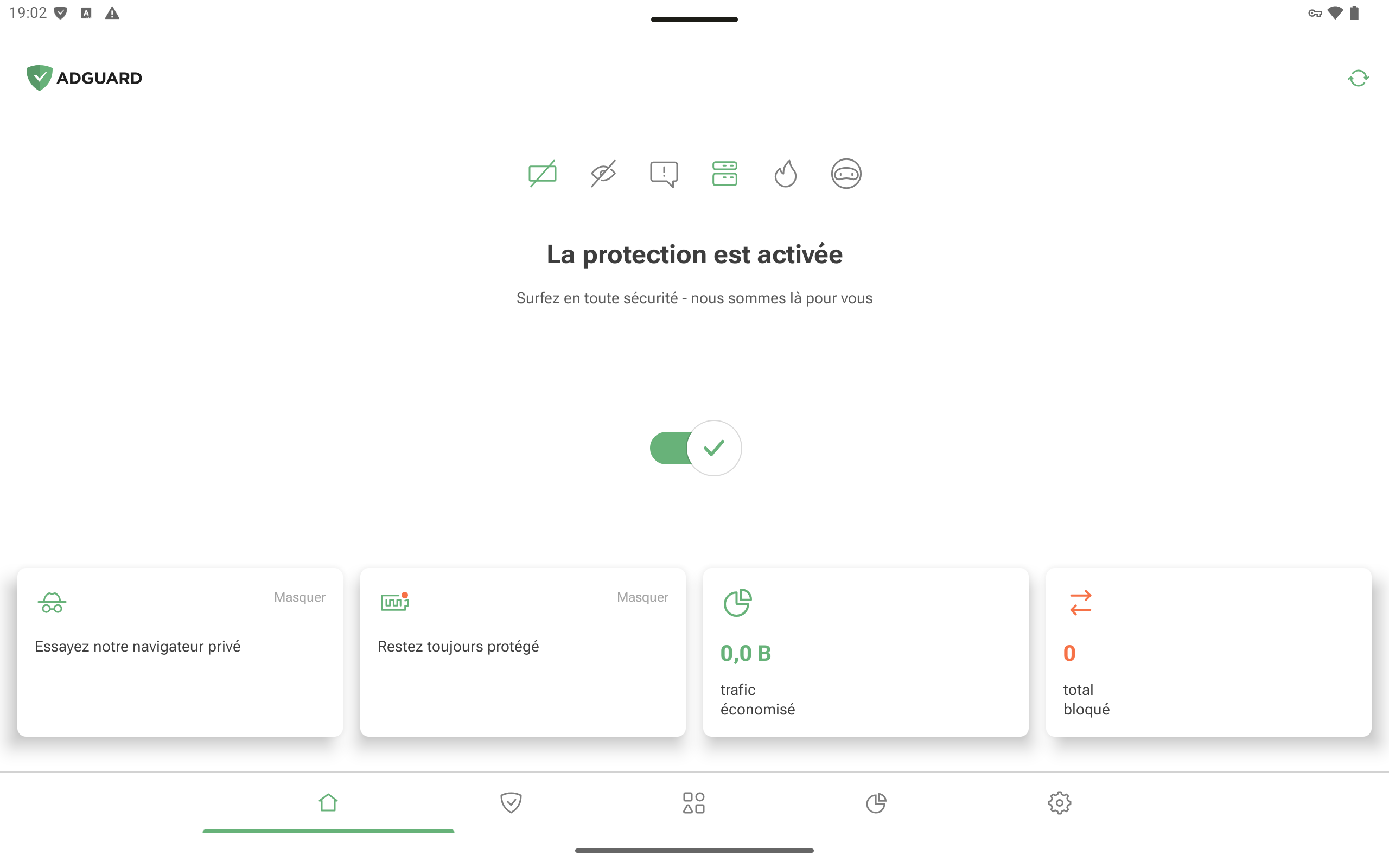 Nous disons toujours que vos rétroactions sont importantes pour nous, et en effet, cette fois-ci nous avons ajouté une fonctionnalité demandée très souvent par nos utilisateurs — le mode horizontal. Désormais, l’utilisation de AdGuard sur une tablette est facile et commode.