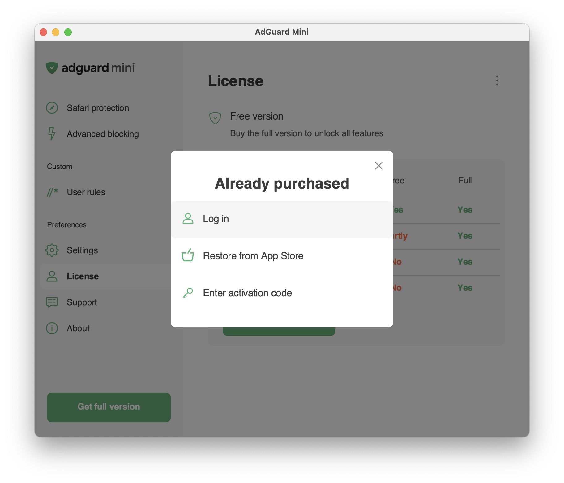 Si prega di notare: solo gli abbonamenti acquistati sull'App Store per iOS non possono essere utilizzati in AdGuard Mini per Mac.