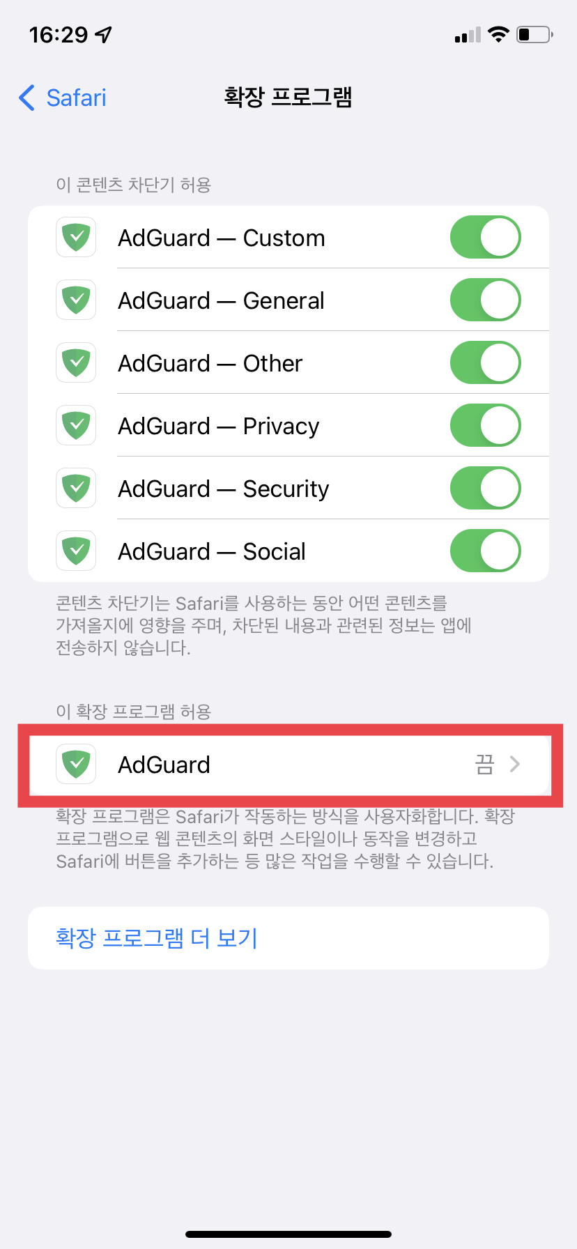 Safari 브라우저에서 AdGuard 확장 프로그램을 켤 수도 있습니다.