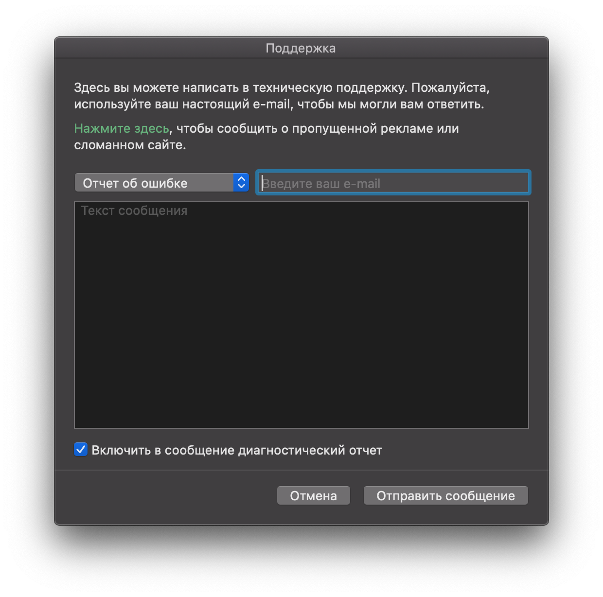 Чтобы сообщить о пропущенной рекламе или сломанном сайте, перейдите по ссылке над окном сообщения, мы используем отдельный инструмент отчётности для этой категории вопросов.
