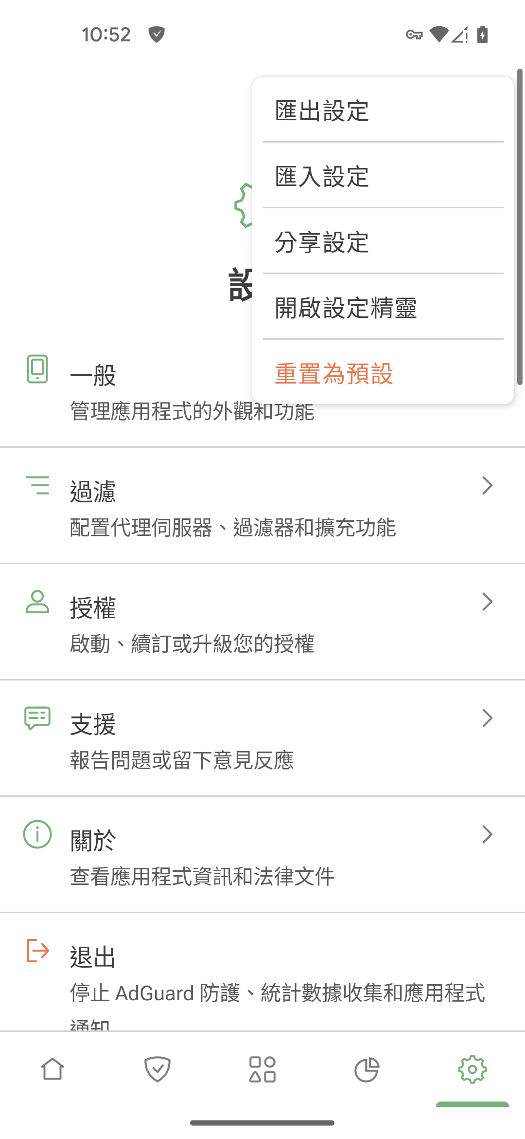 要分享您的設定,請前往「設定」→ 選單 (⋮) →「分享設定」。如果有人向您傳送連結,只需在瀏覽器中開啟並點選「匯入」。