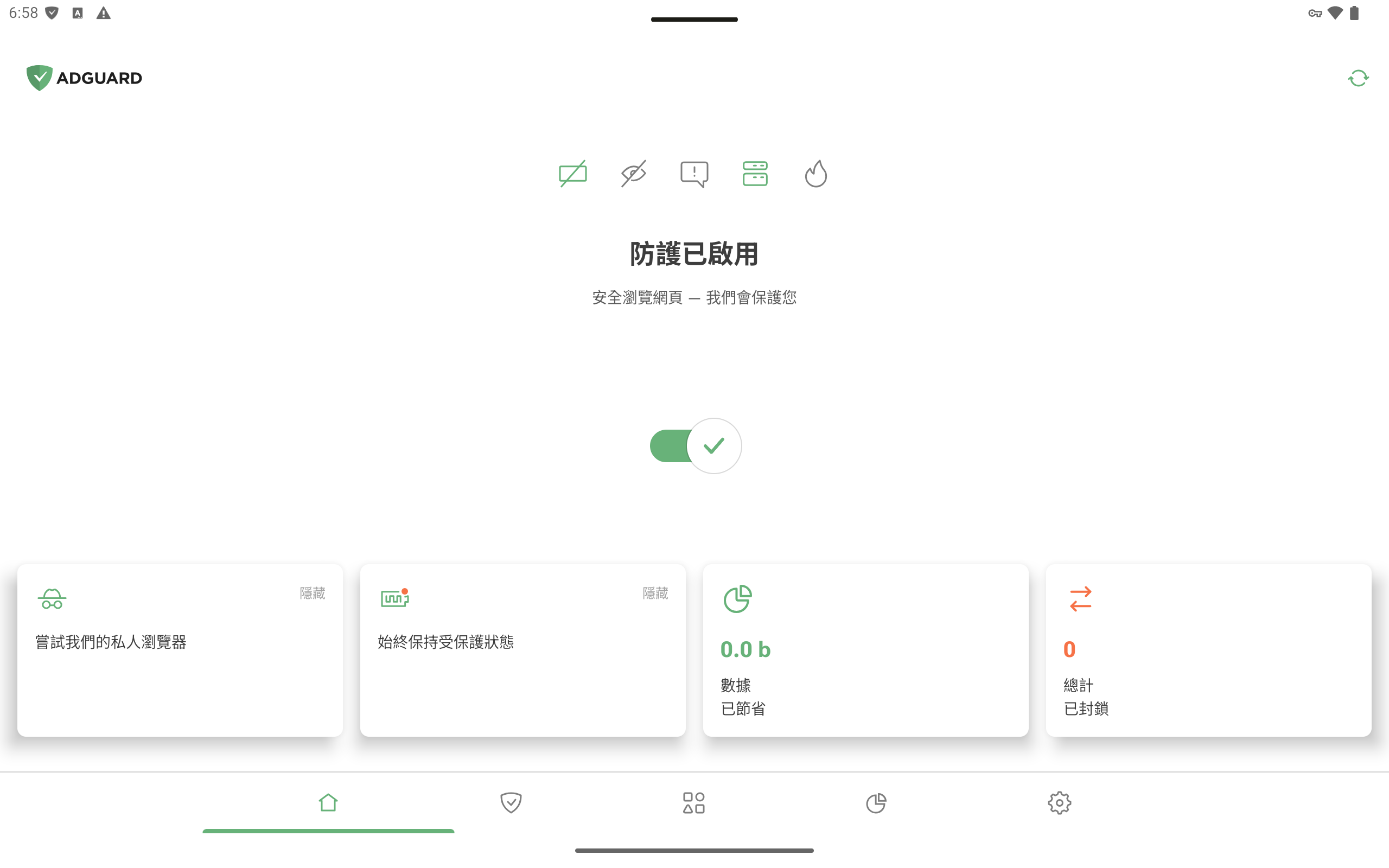 我們始終重視您的反饋,這次便新增了這項備受期待的功能,橫屏模式。現在在平板電腦上使用 AdGuard 更加得心應手。